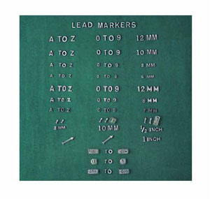 Lead Markers are used for Identification (Job no., Segment & Company name.), Direction, & Date on Films during exposure. They can be manufactured with either Pure Lead or Mixed Lead. Lead Letter A to Z, Lead Number 0 to 9, Lead Arrows 4 types, B for Back Scatter, Date, Month & year set available, in plastic pack also available.